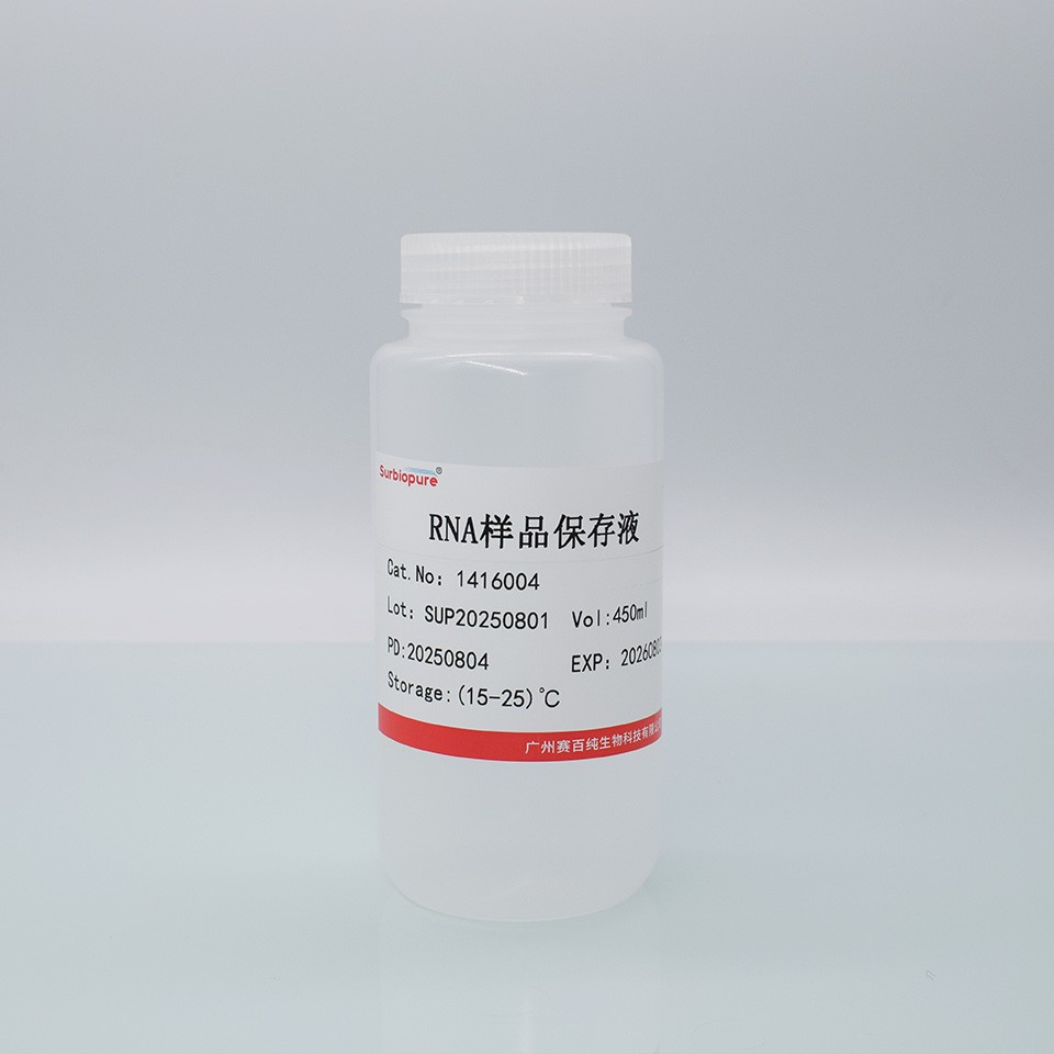 適用于動(dòng)物組織(心,肝,腎,肌肉,睪丸,腦,脾等)、培養(yǎng)細(xì)胞、RNA 病毒、果蠅、細(xì)菌、白細(xì)胞、全血、一些植物組織等。RNAlater 是一種水相的,無(wú)毒的組織保存液體,可以迅速滲入新鮮組織細(xì)胞的胞漿中,在非凍狀態(tài)下原位穩(wěn)定和保護(hù)細(xì)胞內(nèi)的RNA。取下組織薄片后立刻浸入RNAlater保存并不影響將來(lái)提取RNA的質(zhì)量和數(shù)量。RNAlater消除了RNA樣品需要立刻處理或者必須液氮保存的不方便。浸入RNAlater后,新鮮組織細(xì)胞中RNA可以完好的在37?C下保存一天, 在25?C下保存一周, 4?C下保存一個(gè)月, 在-20?C或-80?C下長(zhǎng)期保存。RNA 病毒樣品(如HCV 和HIV)可在37?C保存一個(gè)月。